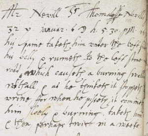An associate of Napier’s who on two occasions stood in for Napier in his practice. The first of his two appearances was in May 1611 (see for instance CASE38140; his second was in July 1612 (see for instance CASE40158). It is possible that this is Napier’s curate from 1610 to 1612, Thomas Stokes, but other than the timing there is no evidence of that. One notable characteristic of this scribe is a tendency to give ages in Latin (‘ætat. 50’) in passages otherwise entirely in English.